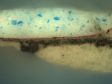 This study found that using a dark gray upper ground layer does not seem to be a common working method for still life painters; it was found in only three of the eighty-three paintings analyzed. In all the other still lifes with a dark background, it was locally applied and did not extend under the objects. In Still Life with Passglas by Jan van de Velde III (1620–1662), for example, the dark background is executed on top of the lighter gray ground layer (fig. 28). It is applied around the larger objects in the still life, such as the passglas, roemer, plate, and pewter dish. For the glasses, the background only continues under the empty and transparent parts of the glass, not under the parts filled with liquid (fig. 29).