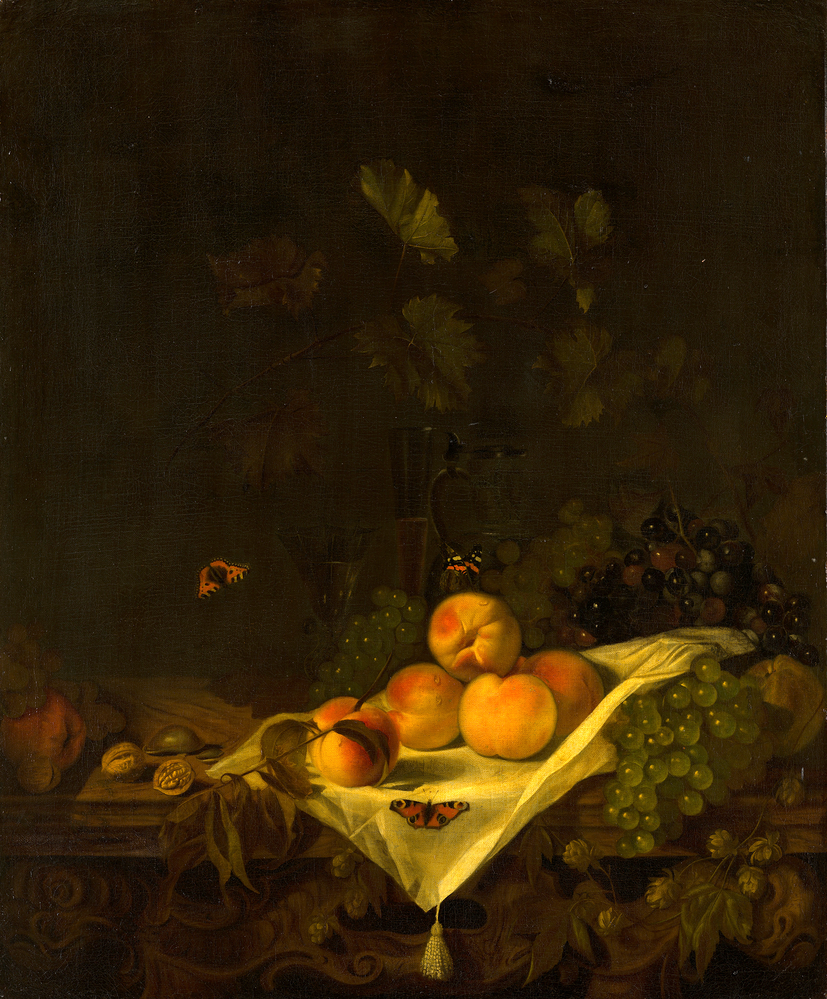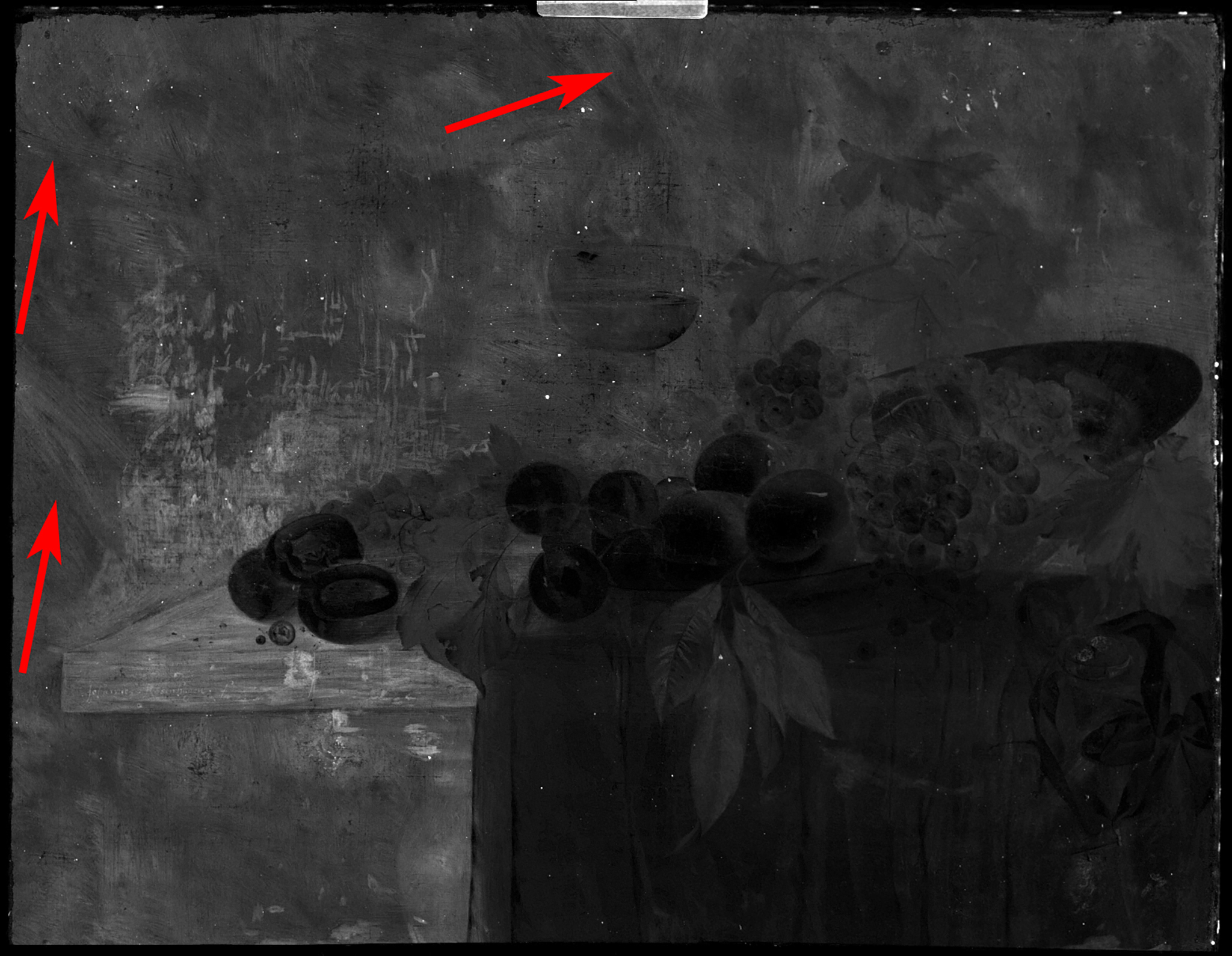 | Abraham van Calraet Still Life with Peaches and Grapes | “A v Calraet,” ca. 1680 | 89 x 73 | Canvas | 754 | Dordrecht | 1. dark gray: fine black, lead white |