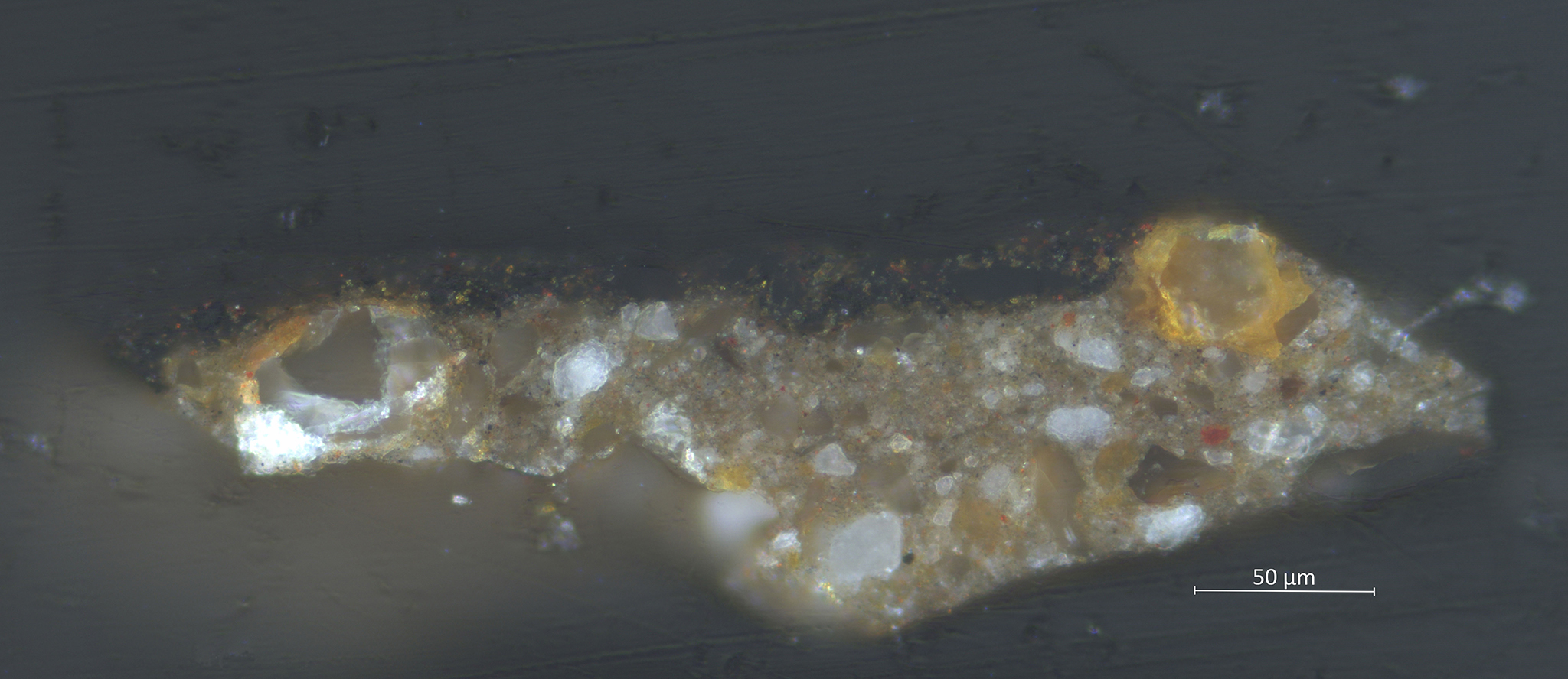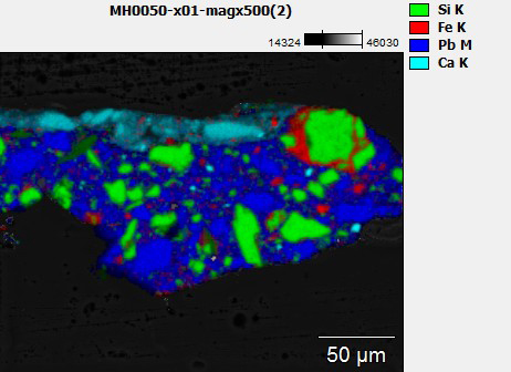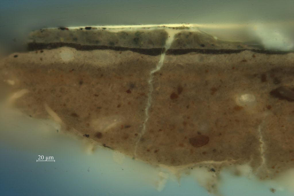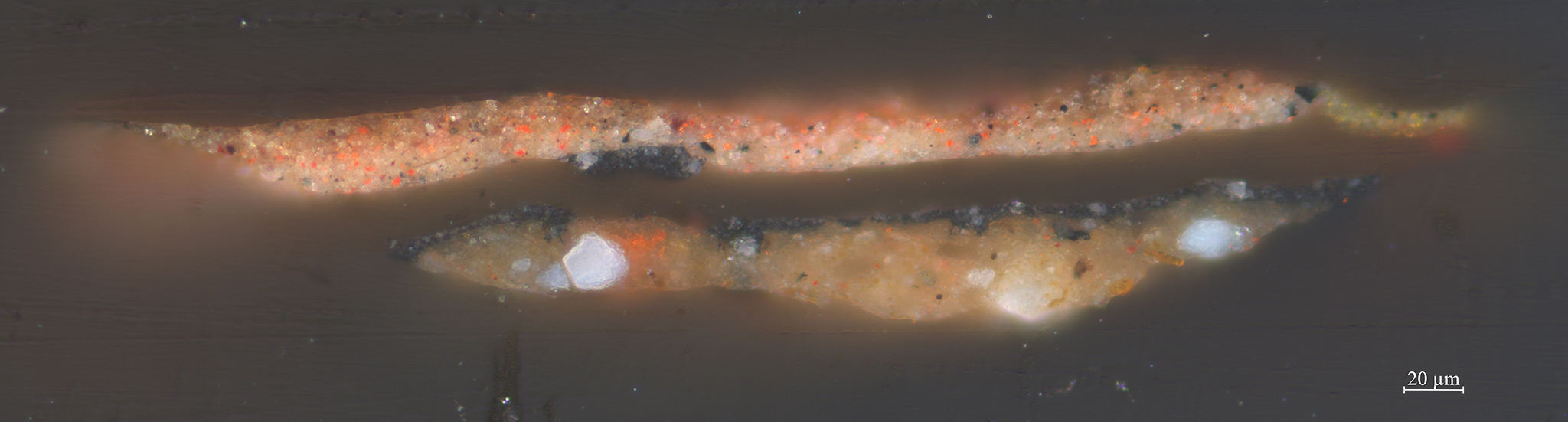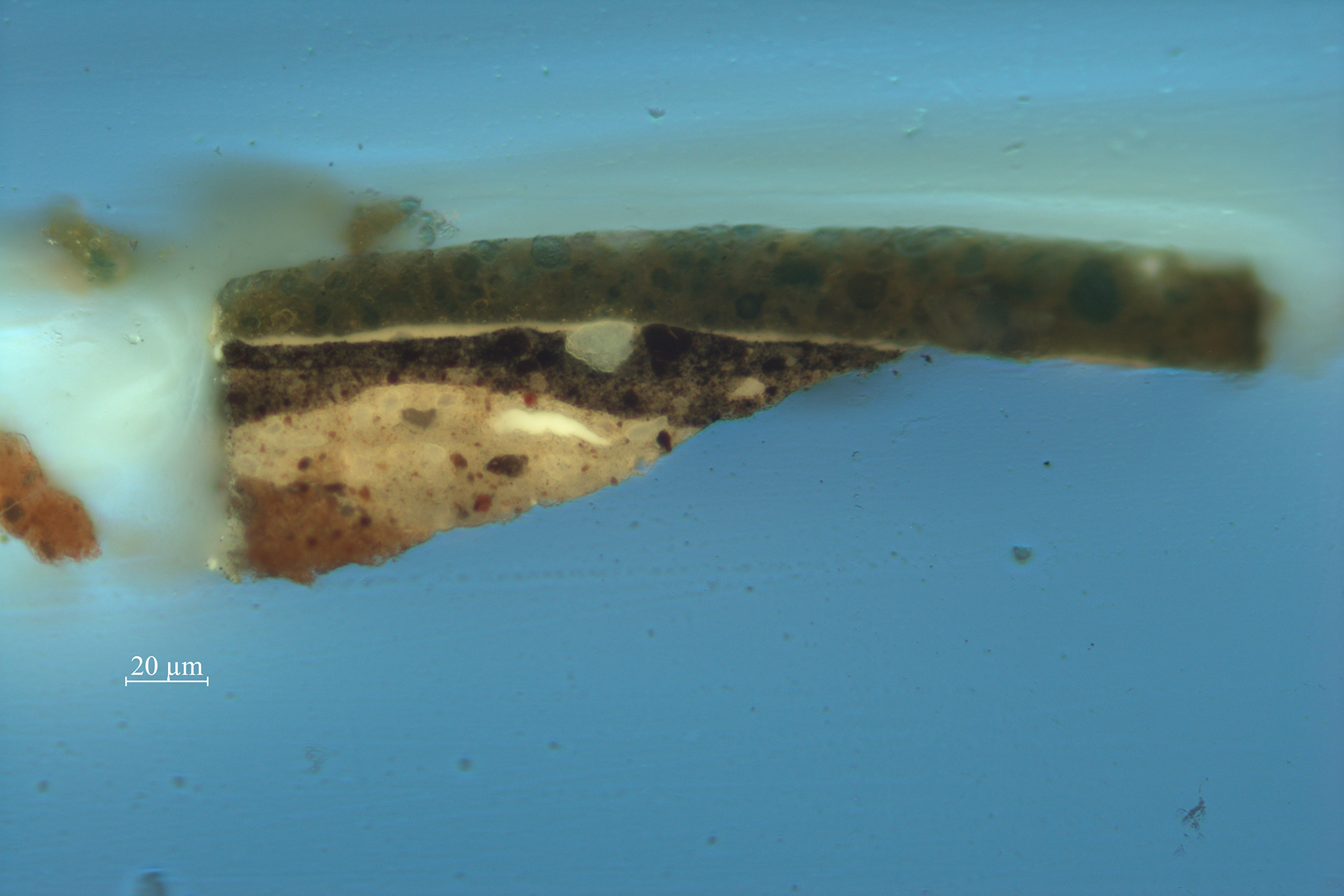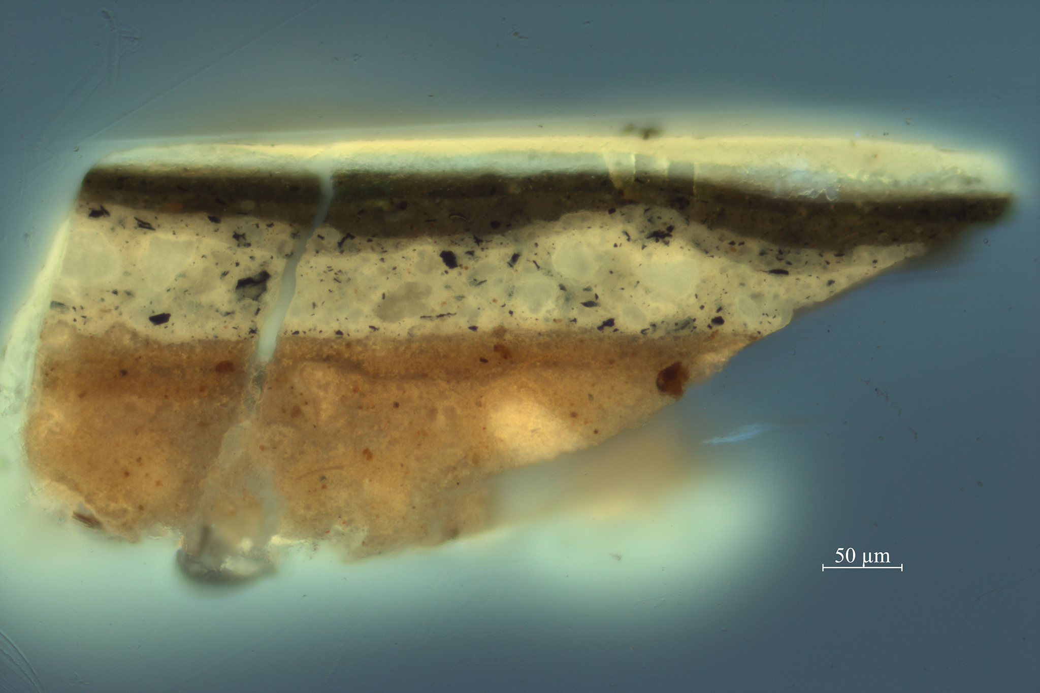 | 2. brown: chalk, earth pigments, black, transparent gray particles, and lead white | ||||||