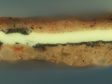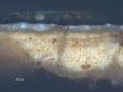 The forty-five paintings on canvas show the largest variety in terms of ground layer composition, number of ground layers, and color. The number of ground layers ranges from one to four; more than half of the paintings on canvas (twenty-three paintings) have a double ground. Of those works with a double ground, approximately half (ten paintings) have a red or reddish lower layer with a gray top layer. The group of paintings with a gray-over-red double ground all originated in the Northern Netherlands (Amsterdam, Utrecht, Nijmegen, or Alkmaar) between about 1650 and 1680, which seemingly substantiates theories that in different artistic centers certain ground compositions were preferred.4 Based on these findings, it seems likely that of the three ground layers found in Willem van Aelst’s (1627–1683) Flower Still Life with a Timepiece, which was painted in Amsterdam, the uppermost layer was applied by the artist himself onto a commercially primed canvas (fig. 3). The upper layer is brown and applied thinly on top of a double ground. The lower ground layers seem to have a common build-up and composition: gray over reddish-tan (figs. 4 and 5).