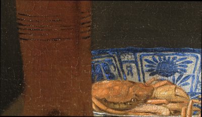 | Abraham van Beyeren Still Life with Seafood | “.AVB f.,” ca. 1645–1660 | 75.8 x 68 | Canvas | 401 | ? | 1. yellow-brown: chalk, earth pigments, black, transparent gray particles, and lead white |