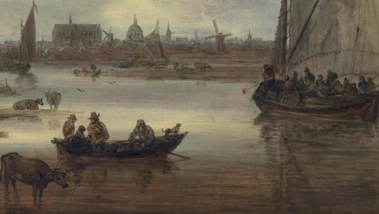 Just exactly what is a colored ground, and what can it do? A comparison between a painting with a landscape and figures attributed to Jan van Eyck (before 1390 –1441) and his workshop painted on a white ground, and one by Jan van Goyen (1596–1656) on a toned surface, serves to demonstrate the differences in buildup and pictorial effect.10 The Three Marys at the Tomb is characterized by enamel-like, luminous tones with clearly defined color areas (fig. 1). In Jan van Goyen’s View of Leiden from the North-East, overall color harmony and tonality are prioritized (fig. 2). The difference literally emerges from the different grounds the artists worked on. Painting on a white surface, the Van Eycks completely covered the panel with multiple translucent paint layers, as seen in a reconstruction of this painting by Indra Kneepkens (see figs. 14–18). This way of building up each area with different layers resulted in the deep green and vibrant red of the saints’ robes but also in distinct boundaries between the different areas of color. In contrast, Jan van Goyen worked on a brown base tone, the combined effect of a thin, light brown ground and the brown color and grain of the panel that shines through.11 This was a conscious decision; he carefully exploited the light brown surface as a midtone throughout the painting, a technique he used not only in this work but also in many others.12 The light brown color and the grain of the wood give translucent qualities to the water in the foreground, connect the city in the middle plane visually to it (fig. 3), and give a lively quality to the clouds in the sky (fig. 4). Van Goyen’s deft exploitation of the brown tone makes abundantly clear that the ground does not function in isolation. Together with the paint layers, a colored ground defines the suggested three-dimensionality of objects in a painting. At the same time, it serves to connect the many different parts in a painting, thus contributing to a sense of unity. Because of these multiple functions, it is also highly efficient.